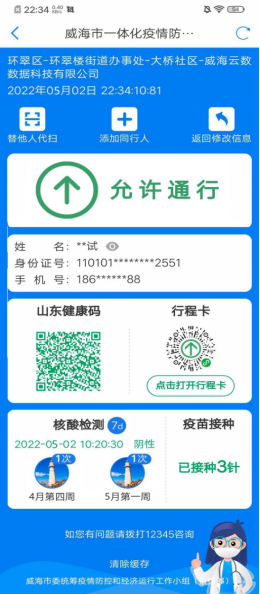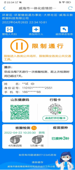 一、根据当前疫情防控形势需要,为进一步强化公共场所和聚集性活动的疫情防控,有效应对奥密克戎变异株传播风险,威海市疫情处置工作指挥部决定,自5月5日起,对进入各类场所和参加聚集性活动的人员,全部查验核酸检测证明,公共场所扫码时严格查验核酸检测证明。7天内无核酸检测阴性证明的人员,场所码显示“限制通行”黄码标识。“黄码”人员限制进入政务服务中心。当进入政务服务中心时请配合工作人员进行扫码查验核酸检测证明。未使用智能手机的老年人等人群,可通过纸质核酸检测报告、代扫健康码等方式进行查验。场所码查验以核酸检测结果时间为准,纸质报告以报告时间为准。
