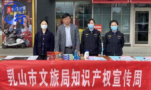 2023年4月25日,乳山市文化和旅游局联合市场监管局、公安局、农业农村局共同开展2023年知识产权宣传周活动,活动现场通过悬挂宣传横幅、发放宣传资料、现场咨询解答等方式,开展知识产权相关知识宣传,讲解知识产权相关政策,营造宣传氛围。活动期间累计悬挂宣传横幅、标语2幅,接受群众咨询10余人次,发放各类宣传材料200余份,取得了良好的社会宣传效果。