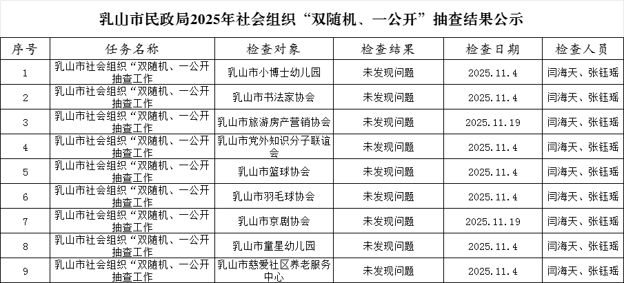 乳山市民政局2025年“双随机、一公开”信息抽查结果公示台账
