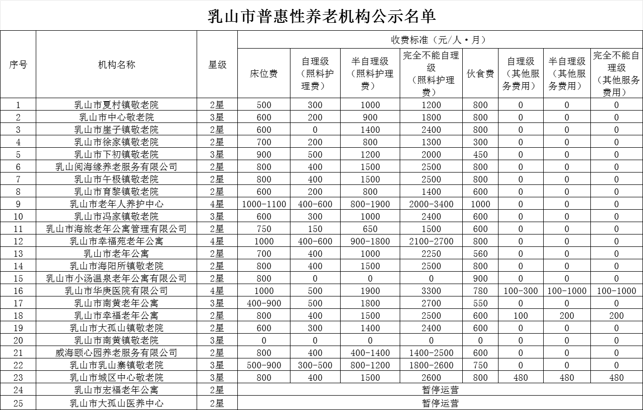 根据山东省民政厅、山东省发展和改革委员会关于印发《山东省普惠性养老机构认定与管理办法(实行)》的规定,现对我市普惠性养老机构进行公示(附普惠性养老机构名单)。公示时间自2025年12月15日开始,公示期为5个工作日。公示期间,如有异议,请及时向乳山市民政局反映,反映问题要用真实的姓名、联系电话和通讯地址,以便及时反馈。