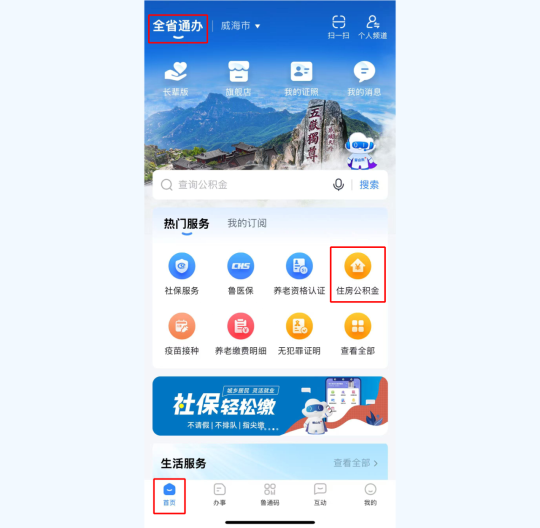 想要在线上办理公积金业务的职工可以下载“爱山东”手机APP进行线上办理。下面我们看一下操作流程: