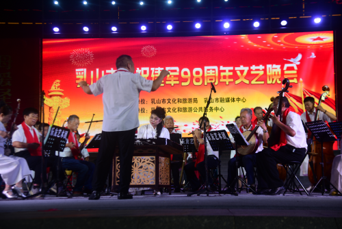 7月25日晚,乳山市庆祝建军98周年文艺晚会在市东方广场举行。晚会在大合唱《今朝》、《爱永在》中拉开了序幕,歌曲、舞蹈、器乐演奏、模特表演等节目轮番上演,抒发着人民军队与人民的深情厚谊以及对美好生活的赞美,让人们在轻松愉快的氛围中接受红色文化的熏陶和教育。