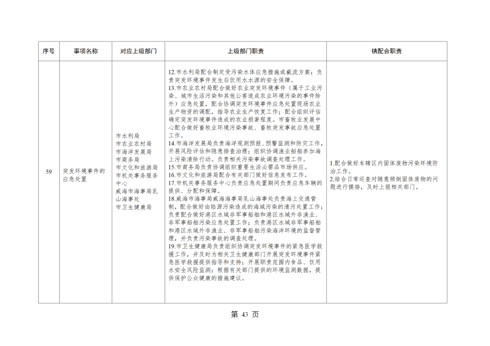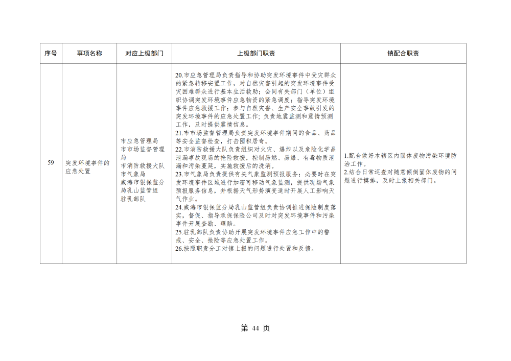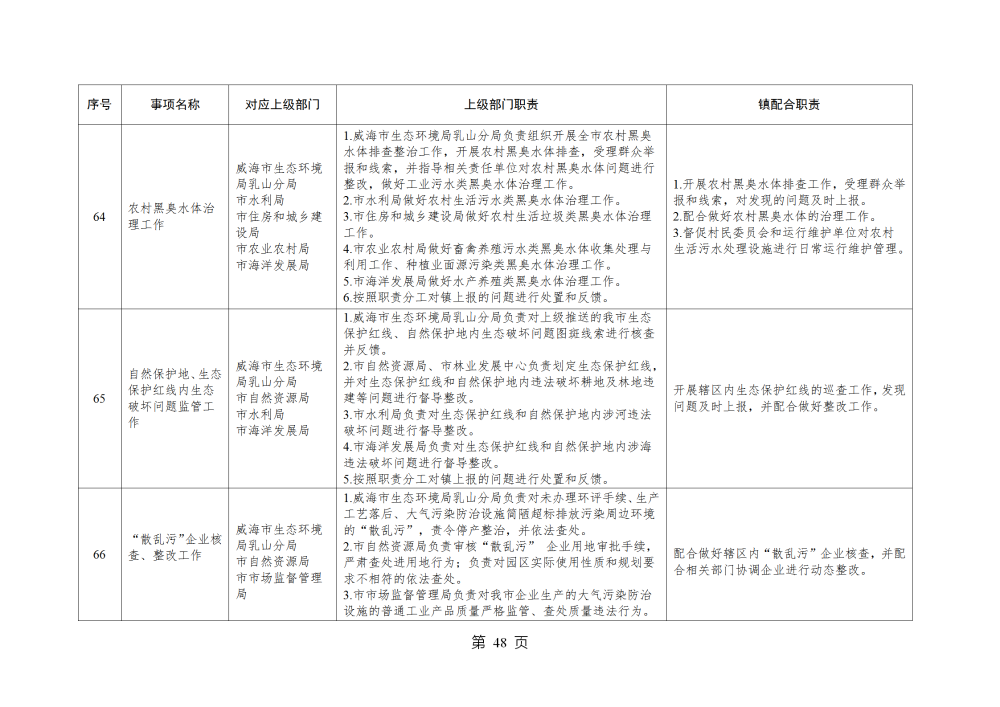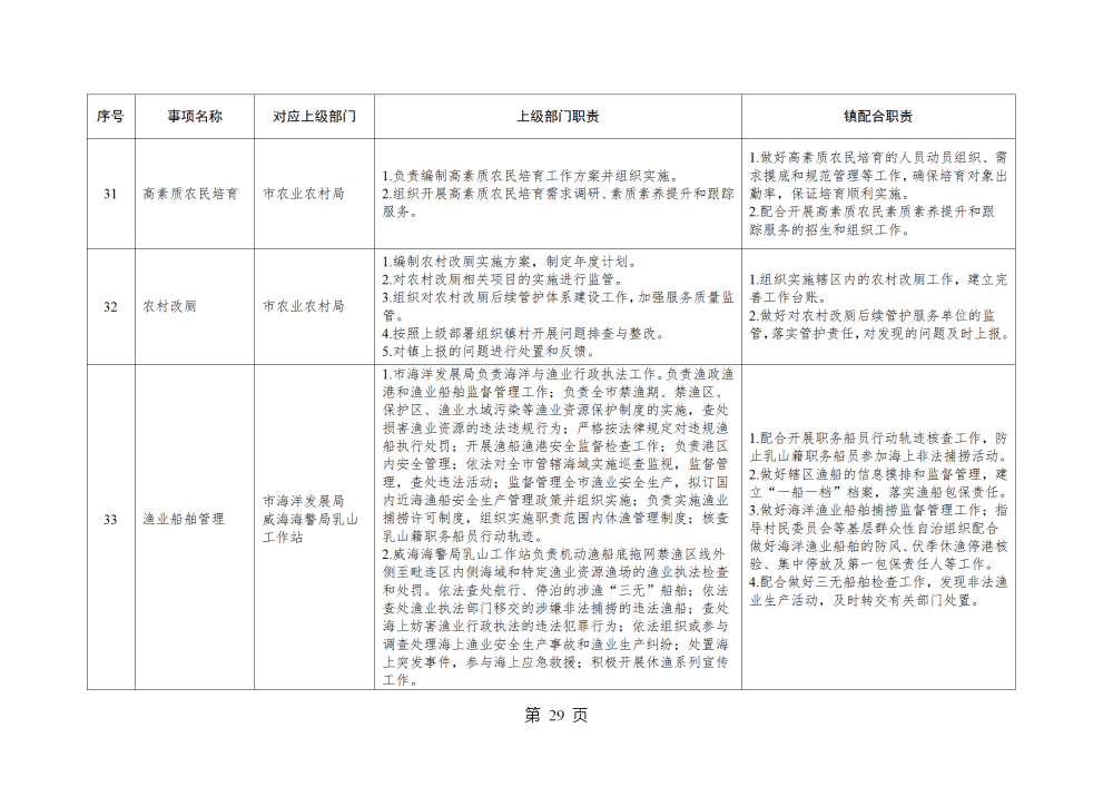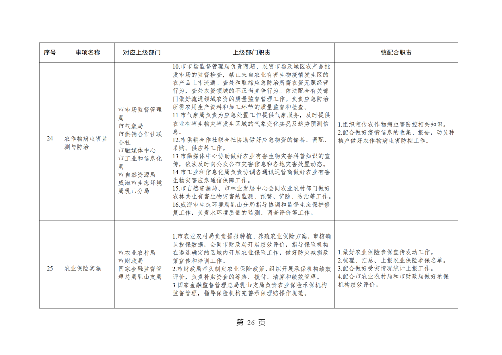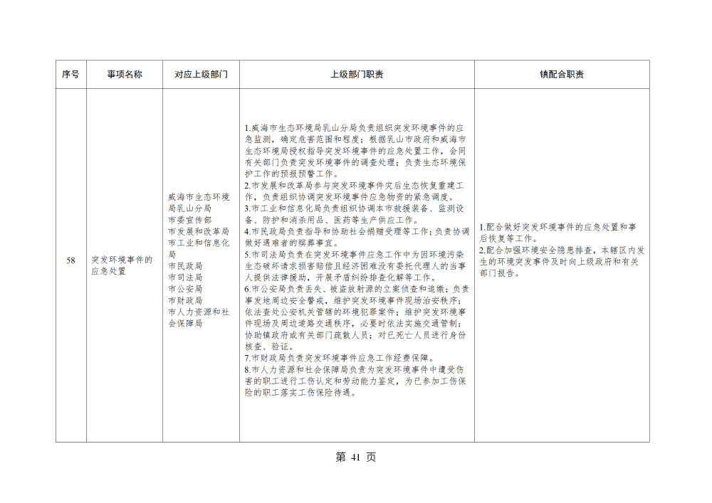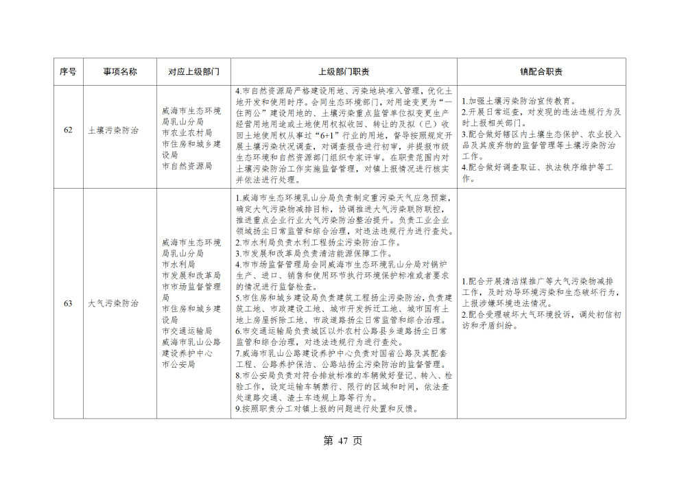 山东省威海市乳山市南黄镇履行职责事项清单