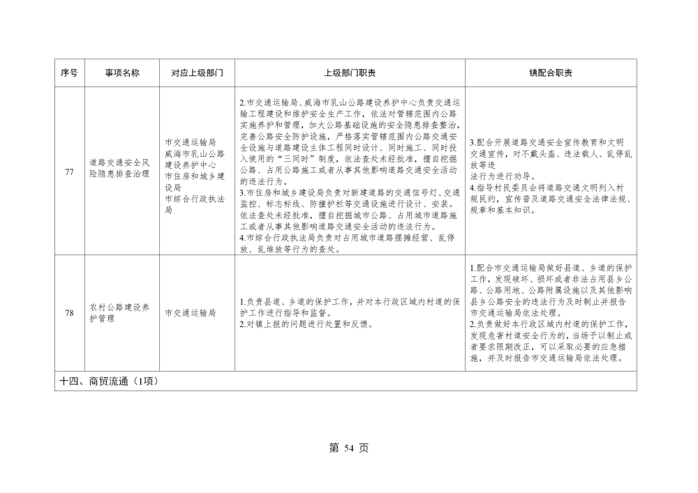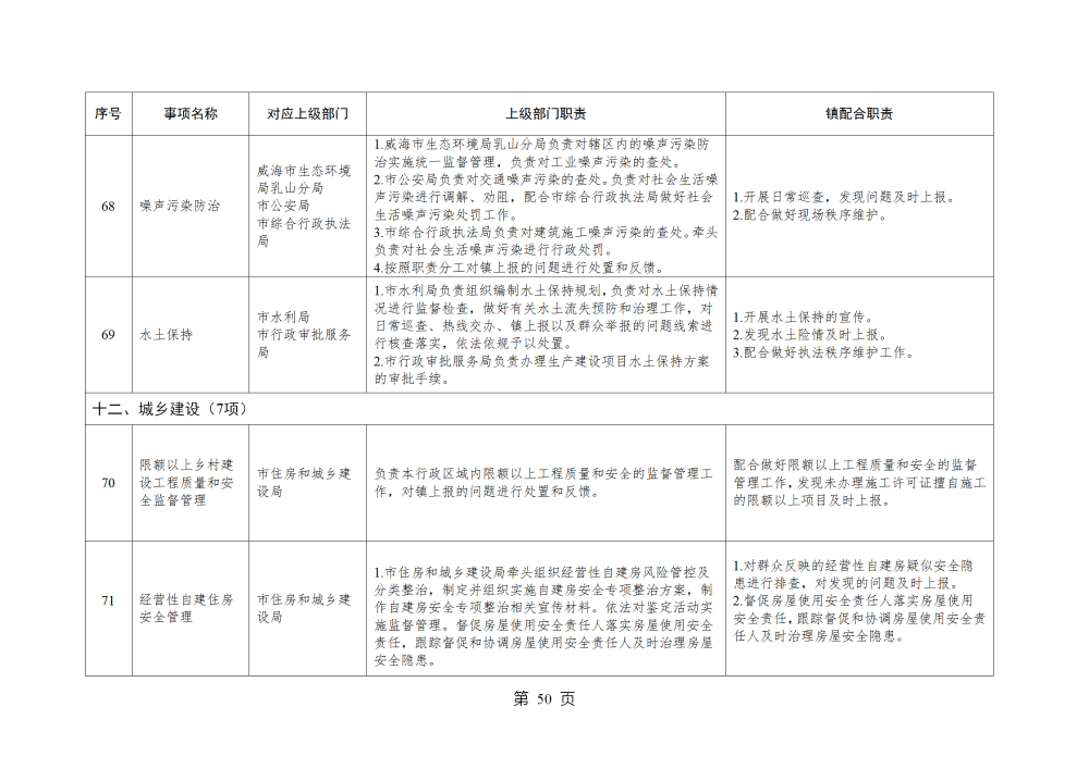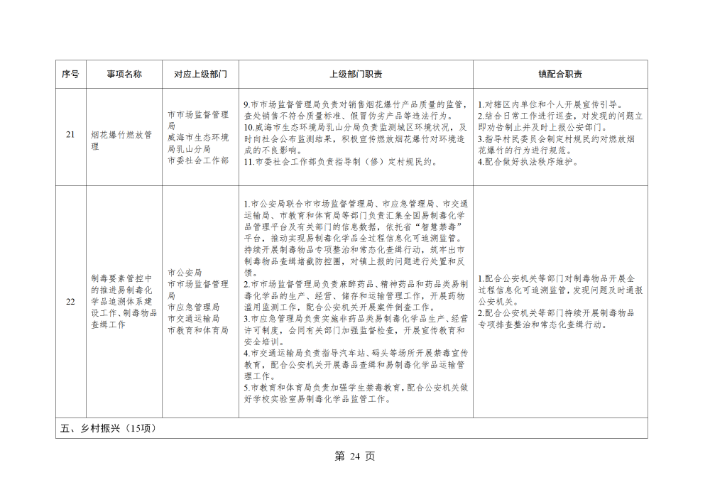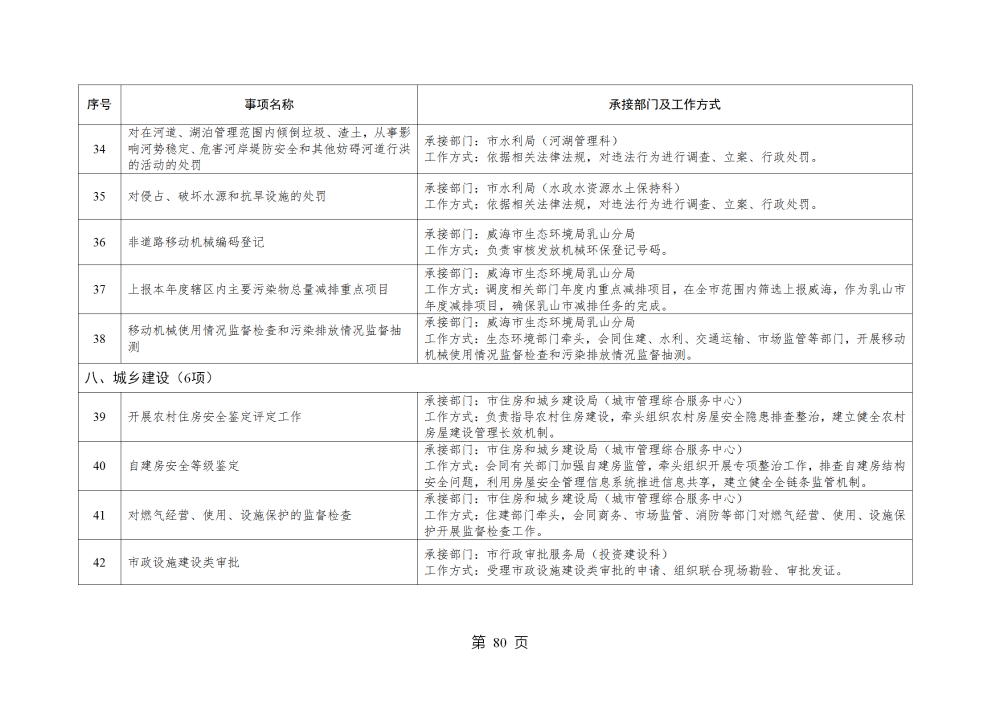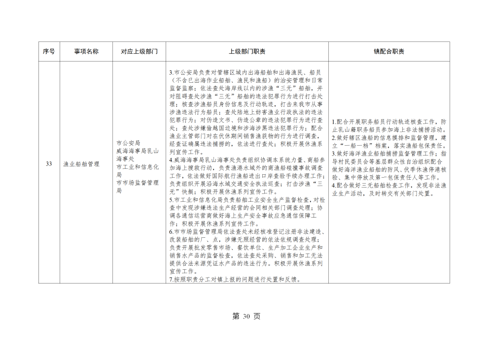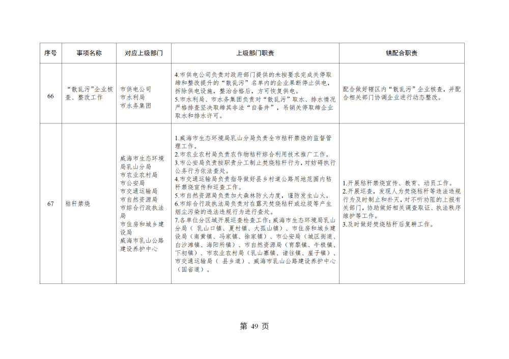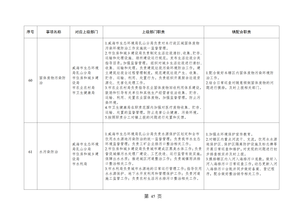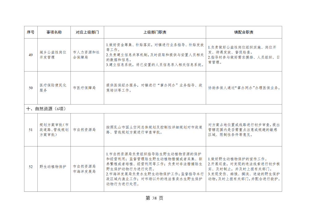 山东省威海市乳山市南黄镇履行职责事项清单