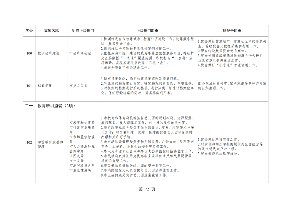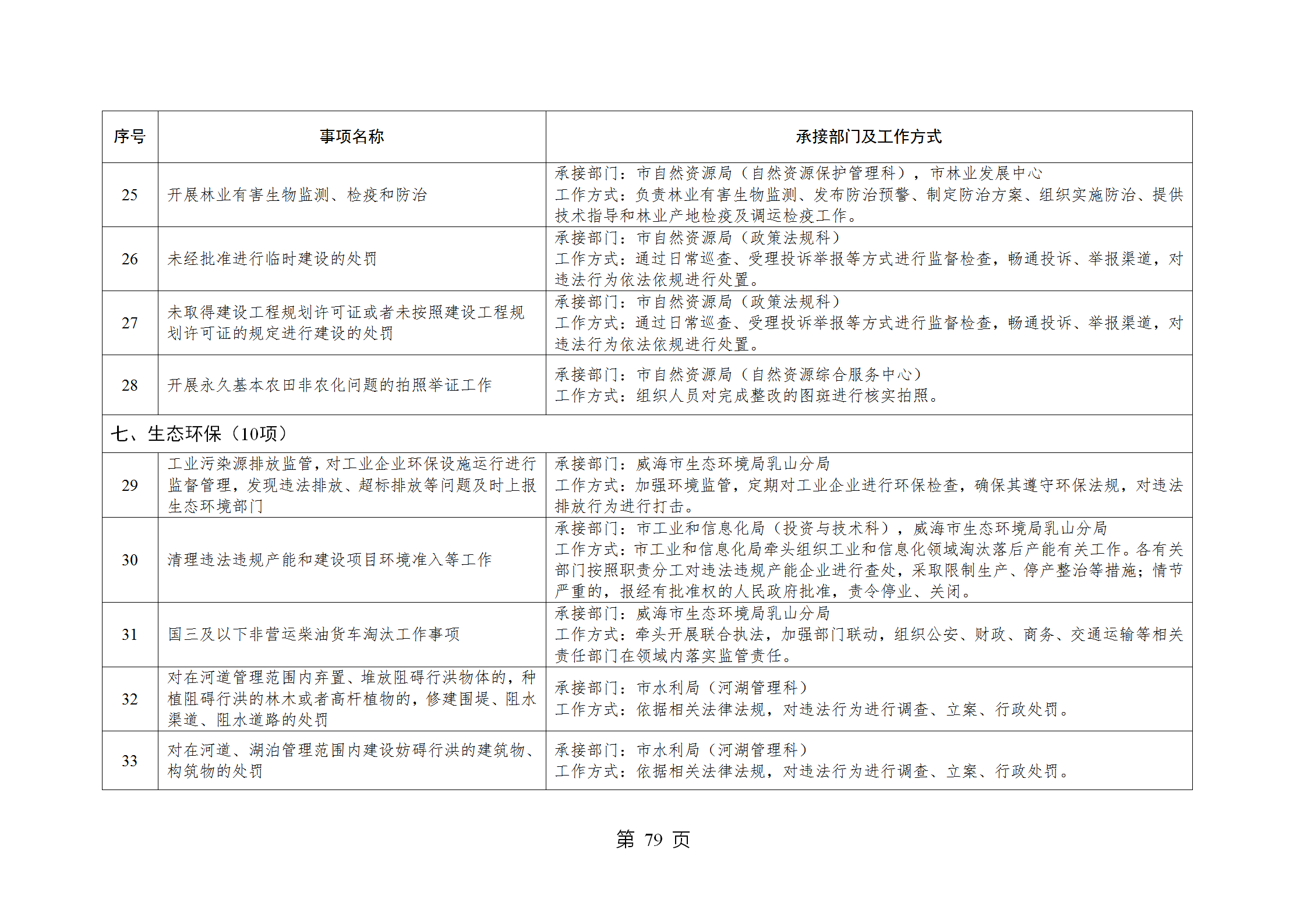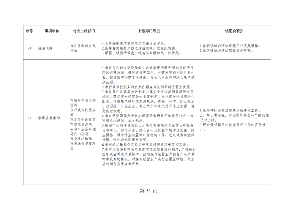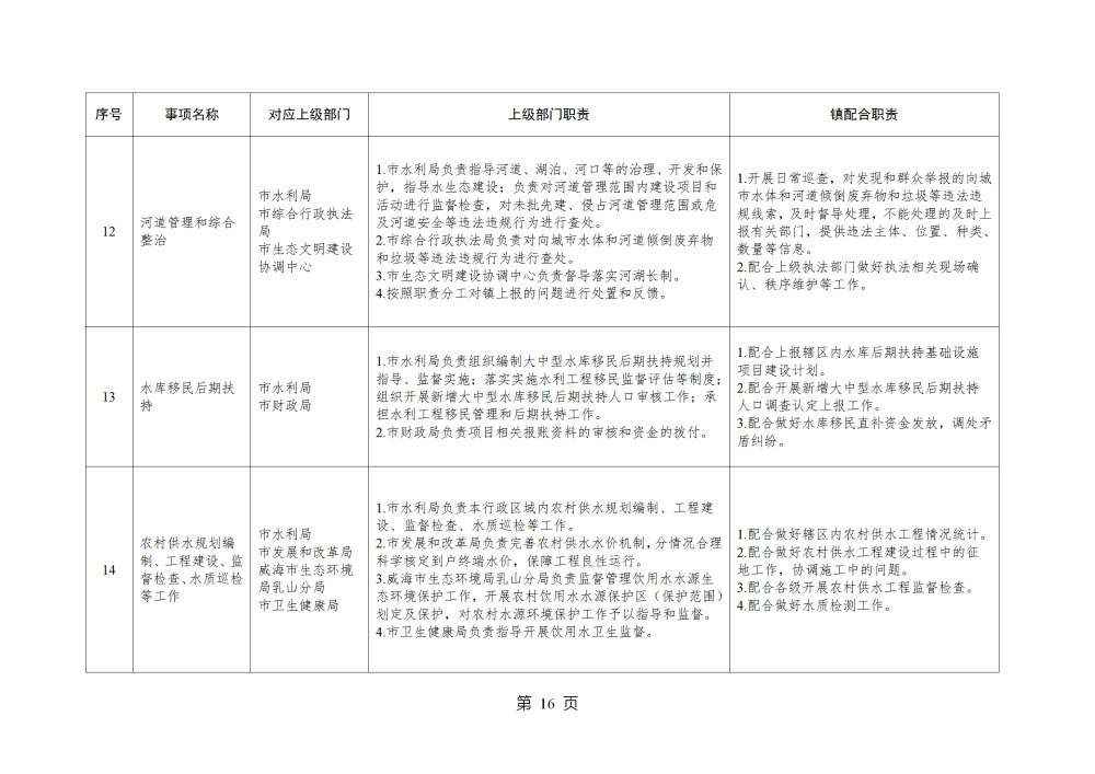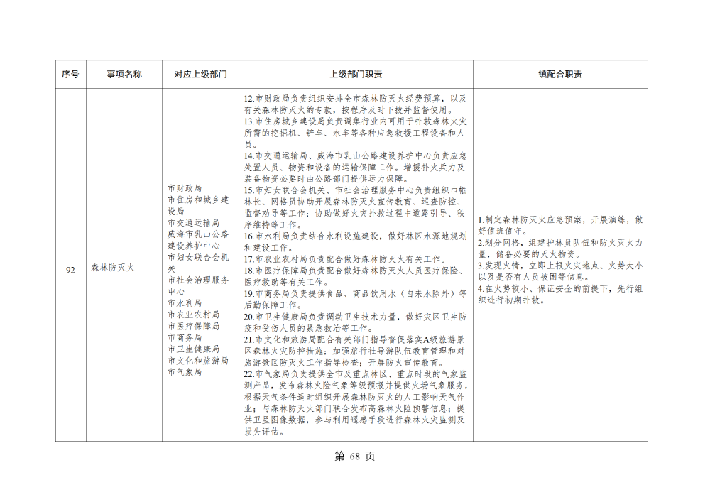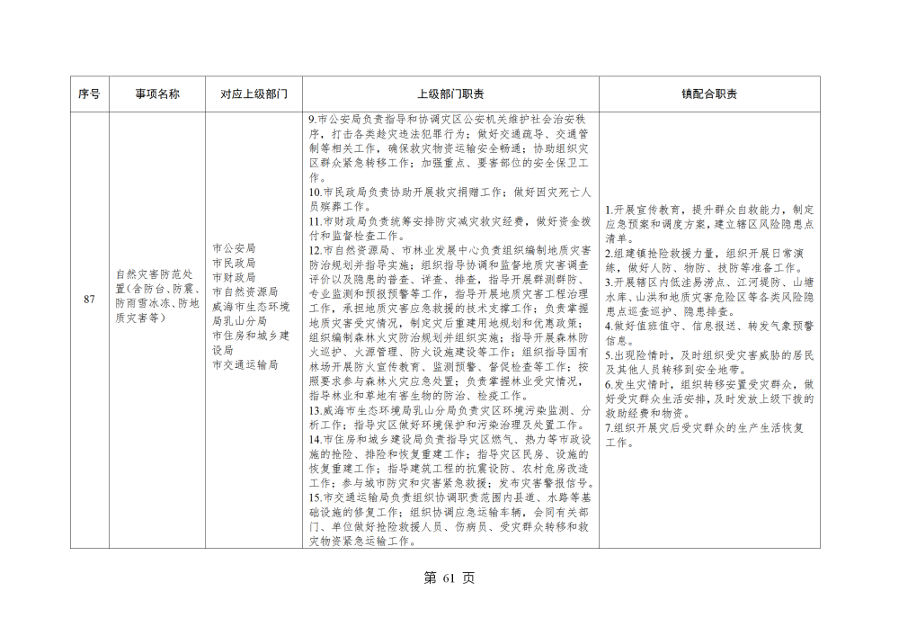 山东省威海市乳山市南黄镇履行职责事项清单