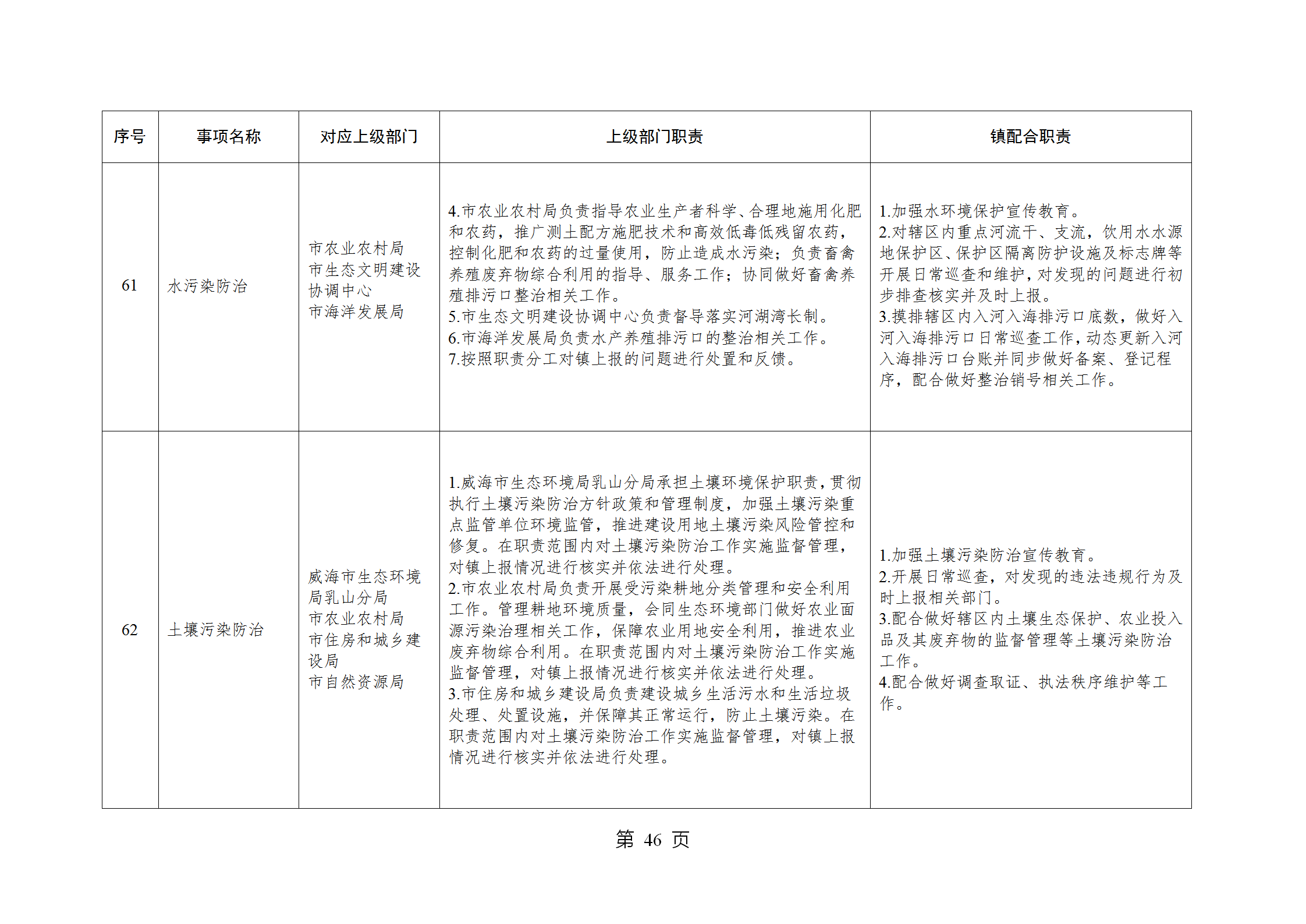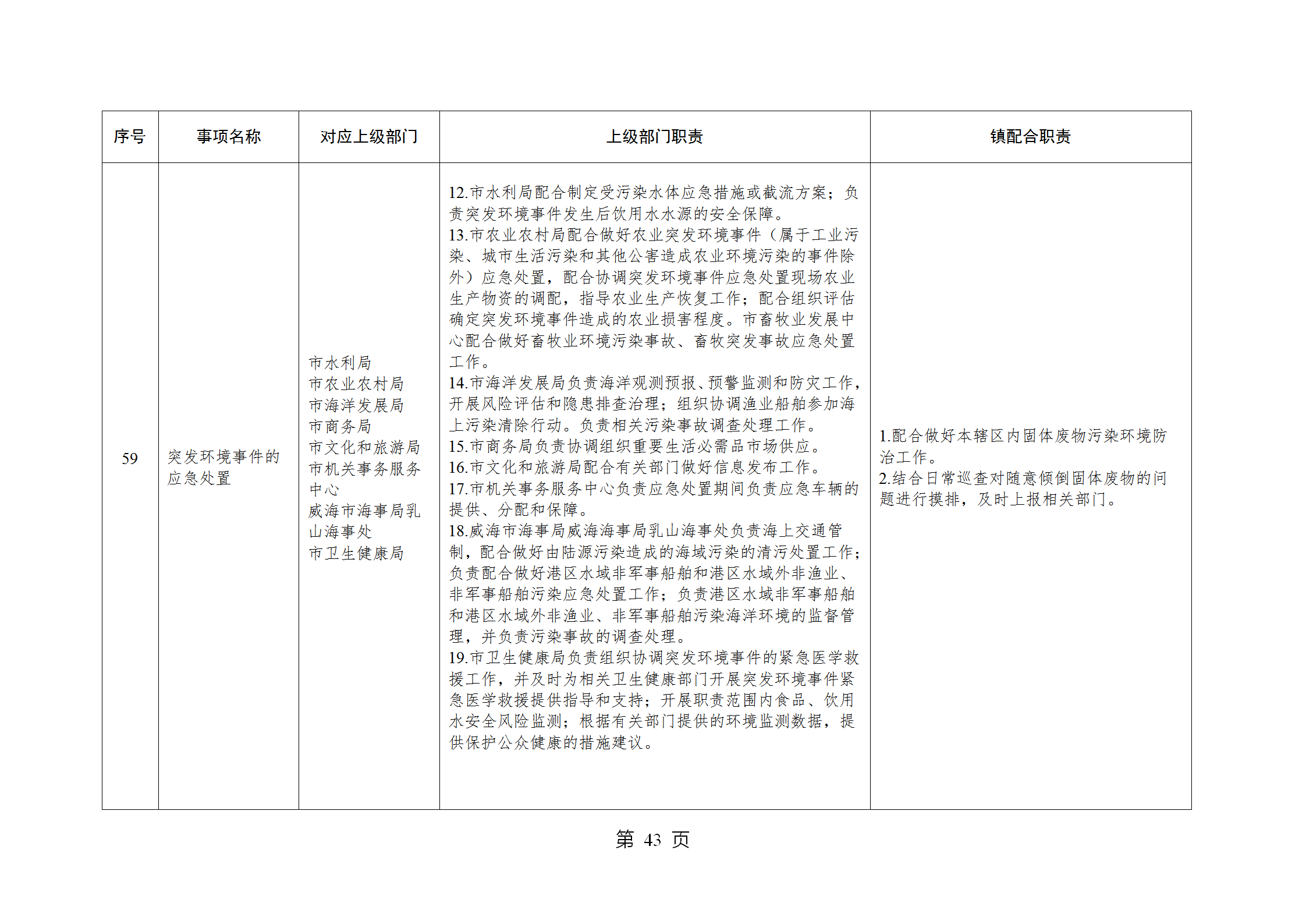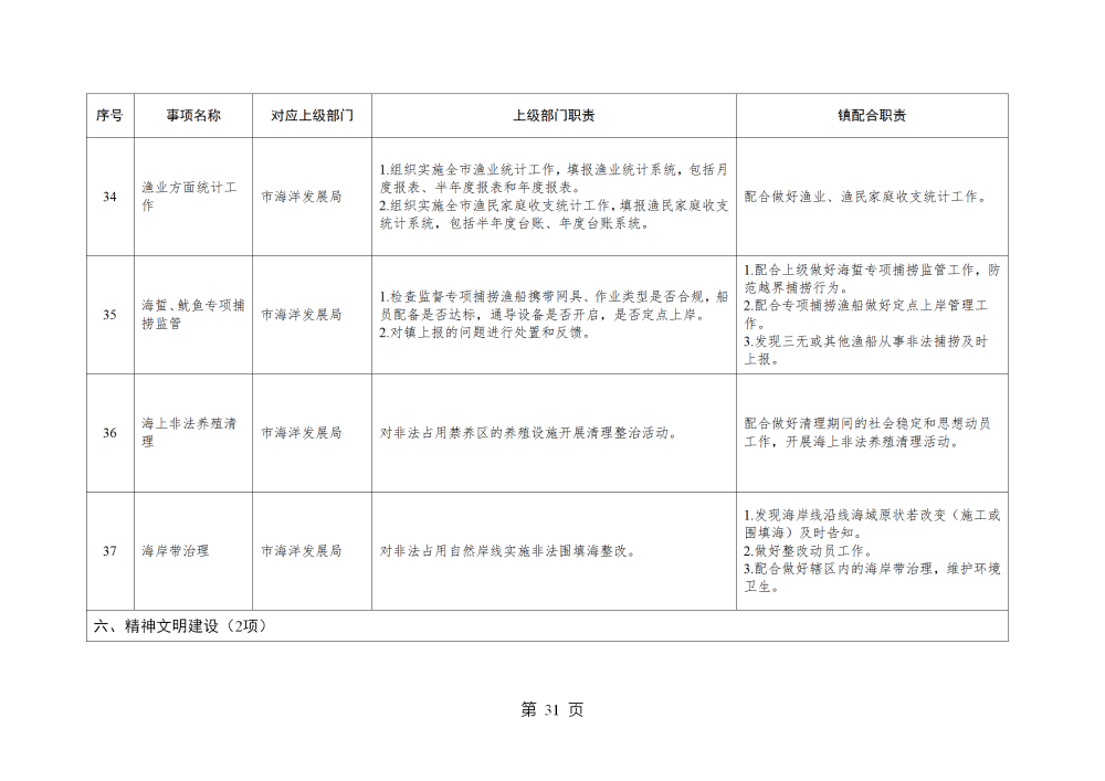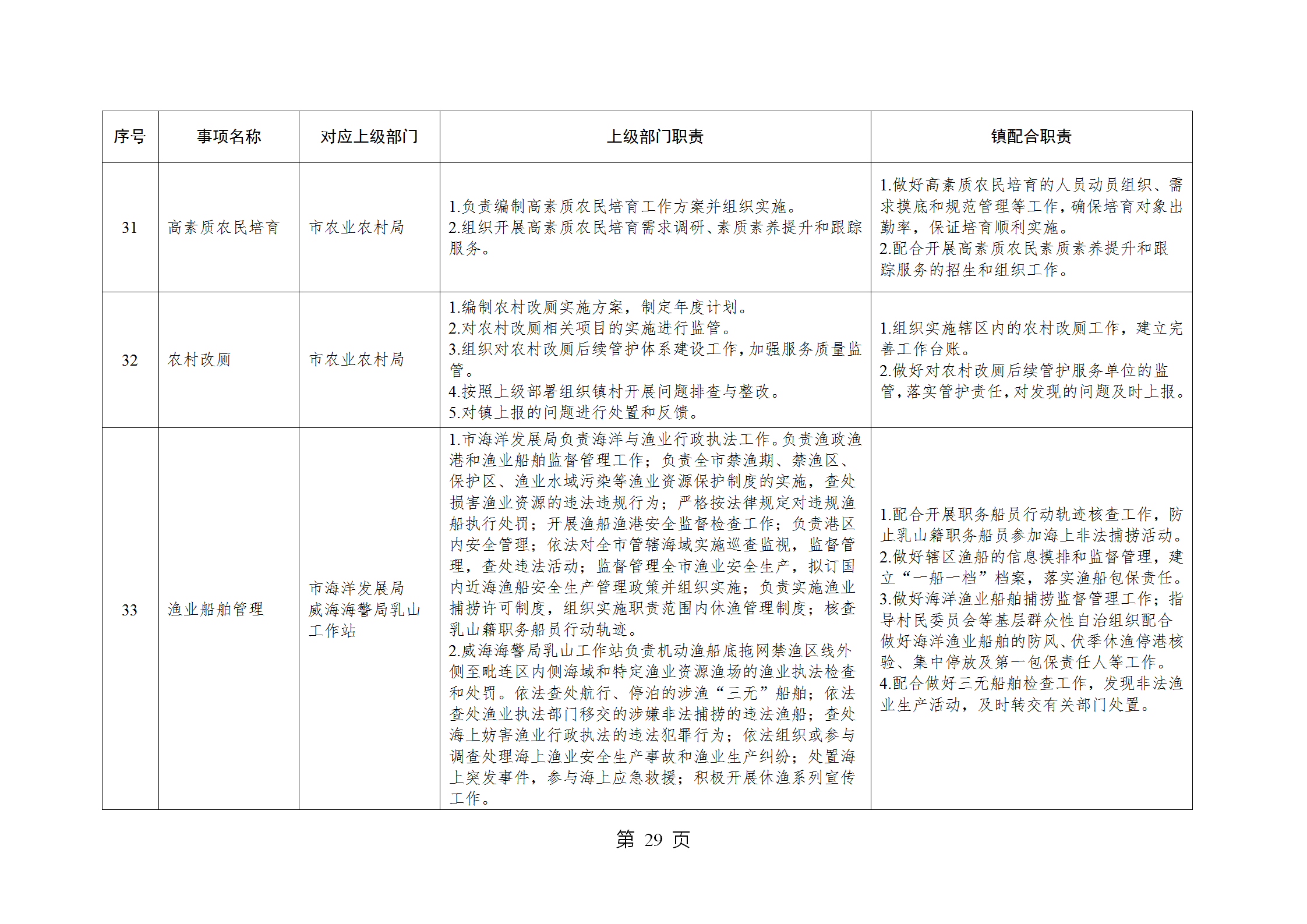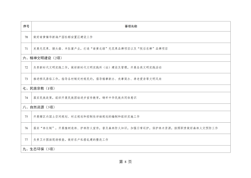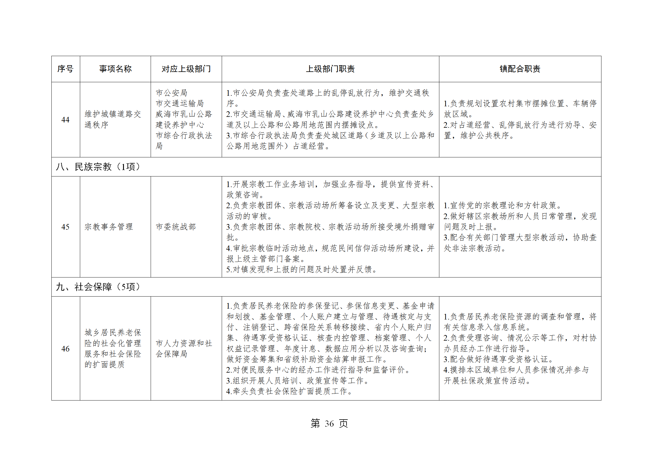 山东省威海市乳山市南黄镇履行职责事项清单