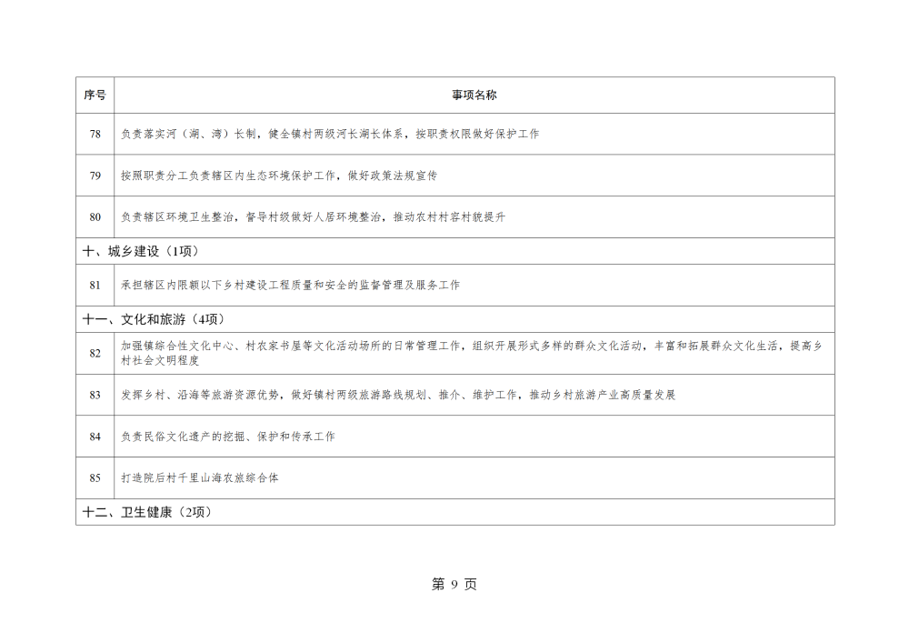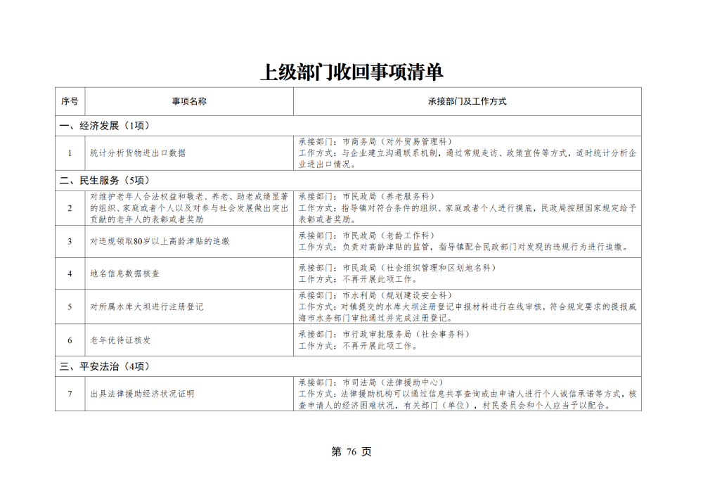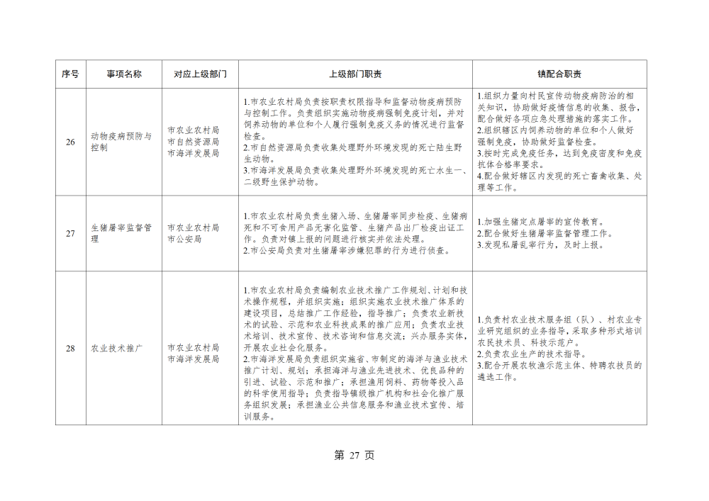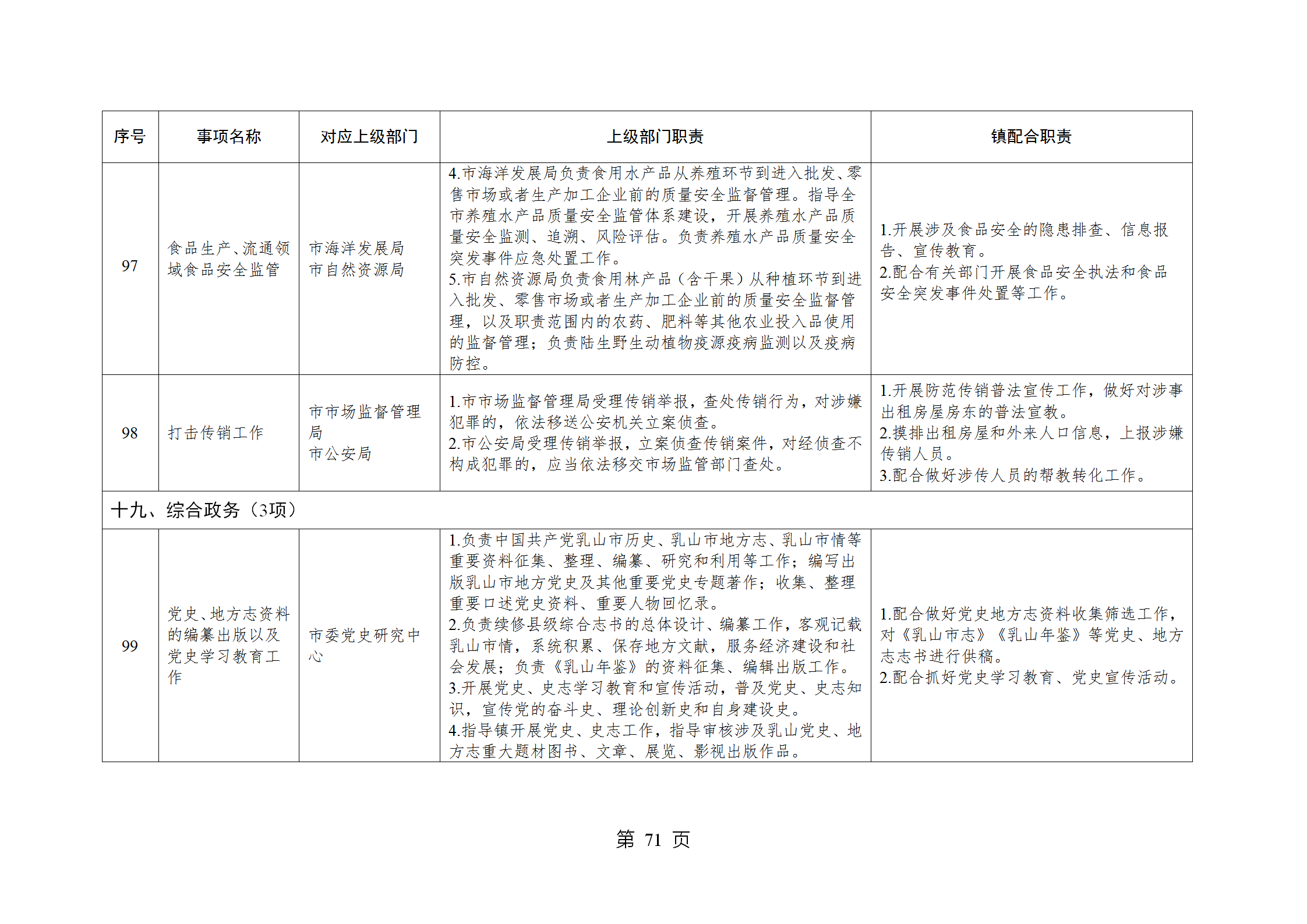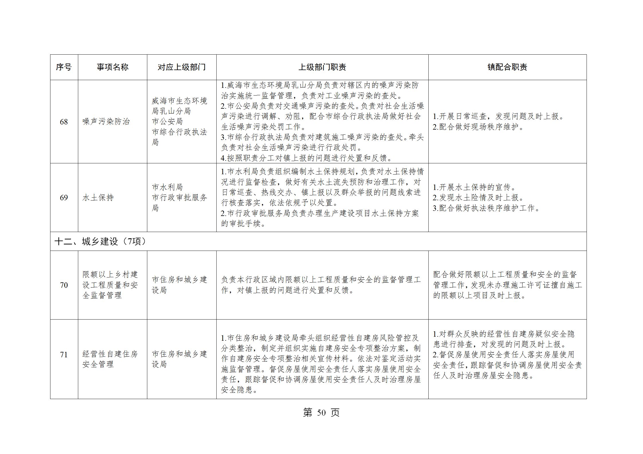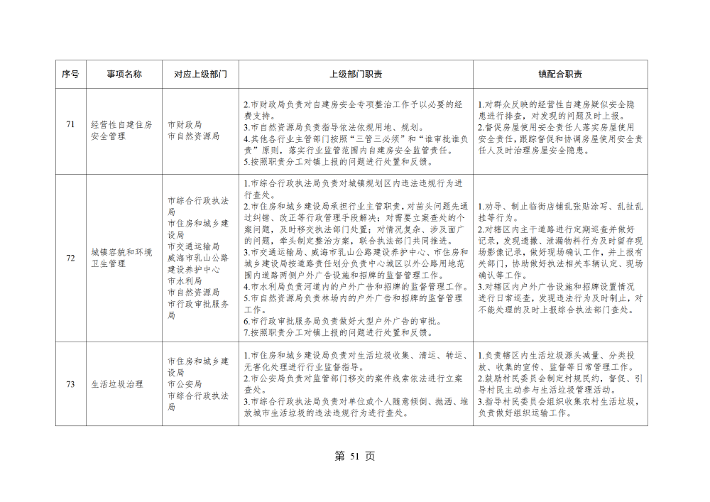 山东省威海市乳山市南黄镇履行职责事项清单