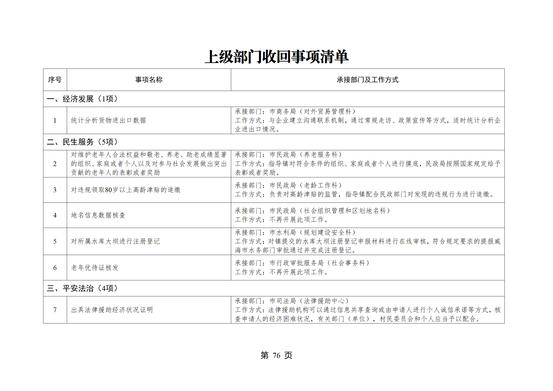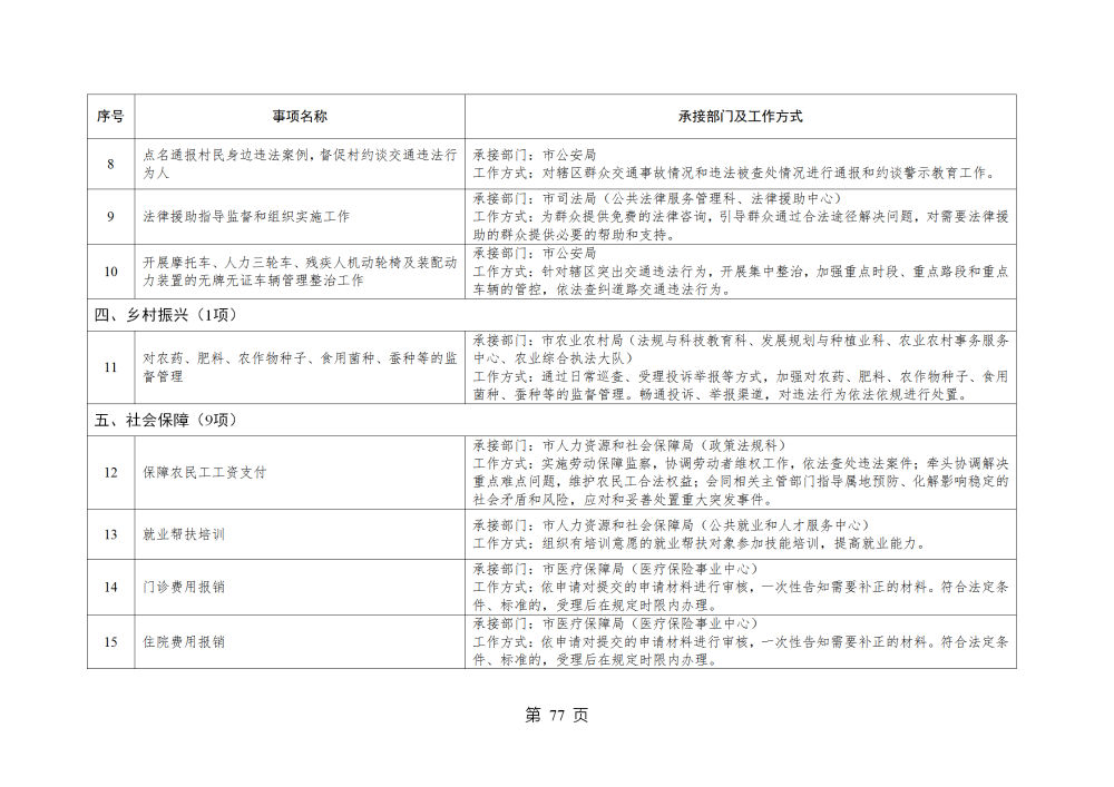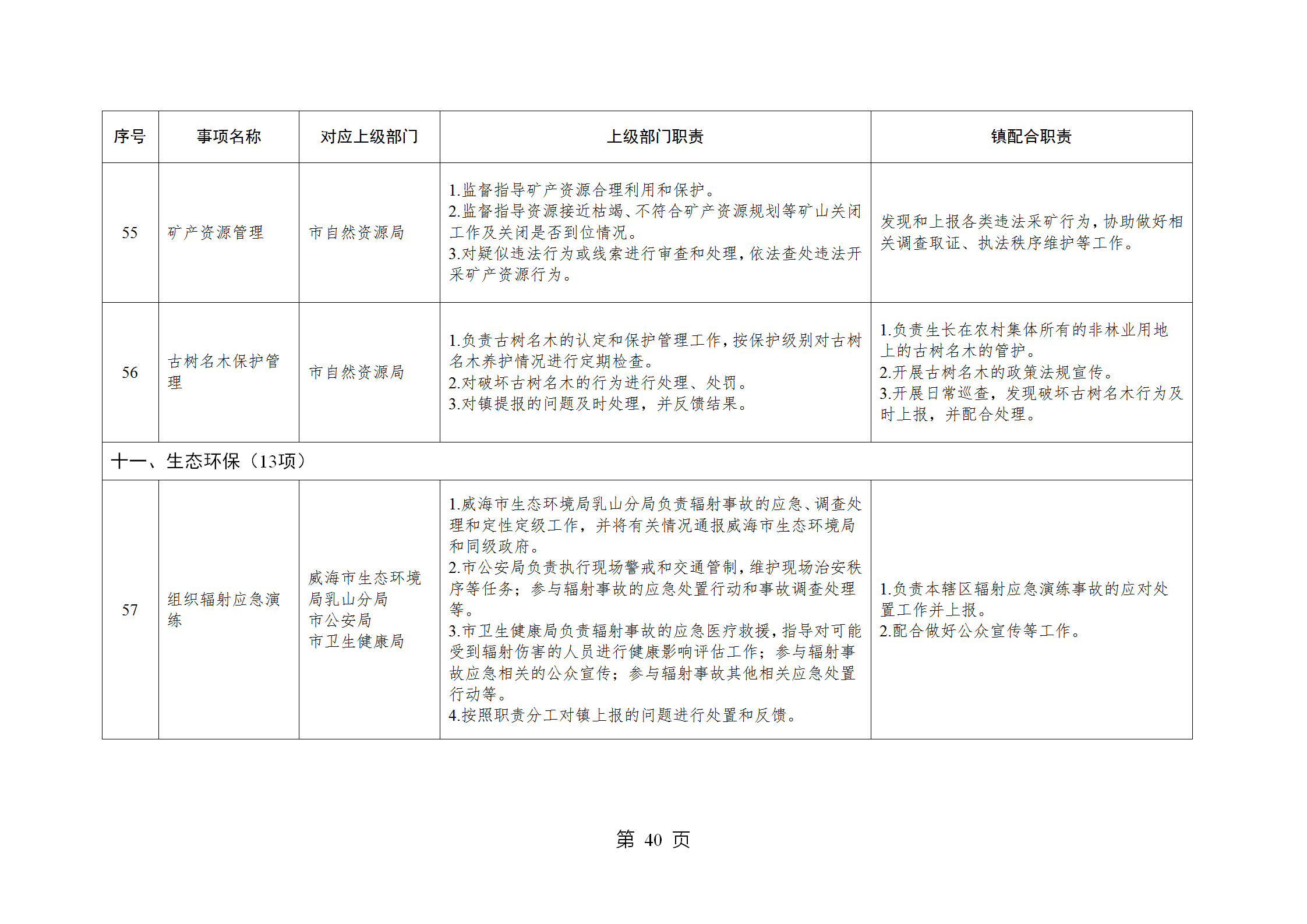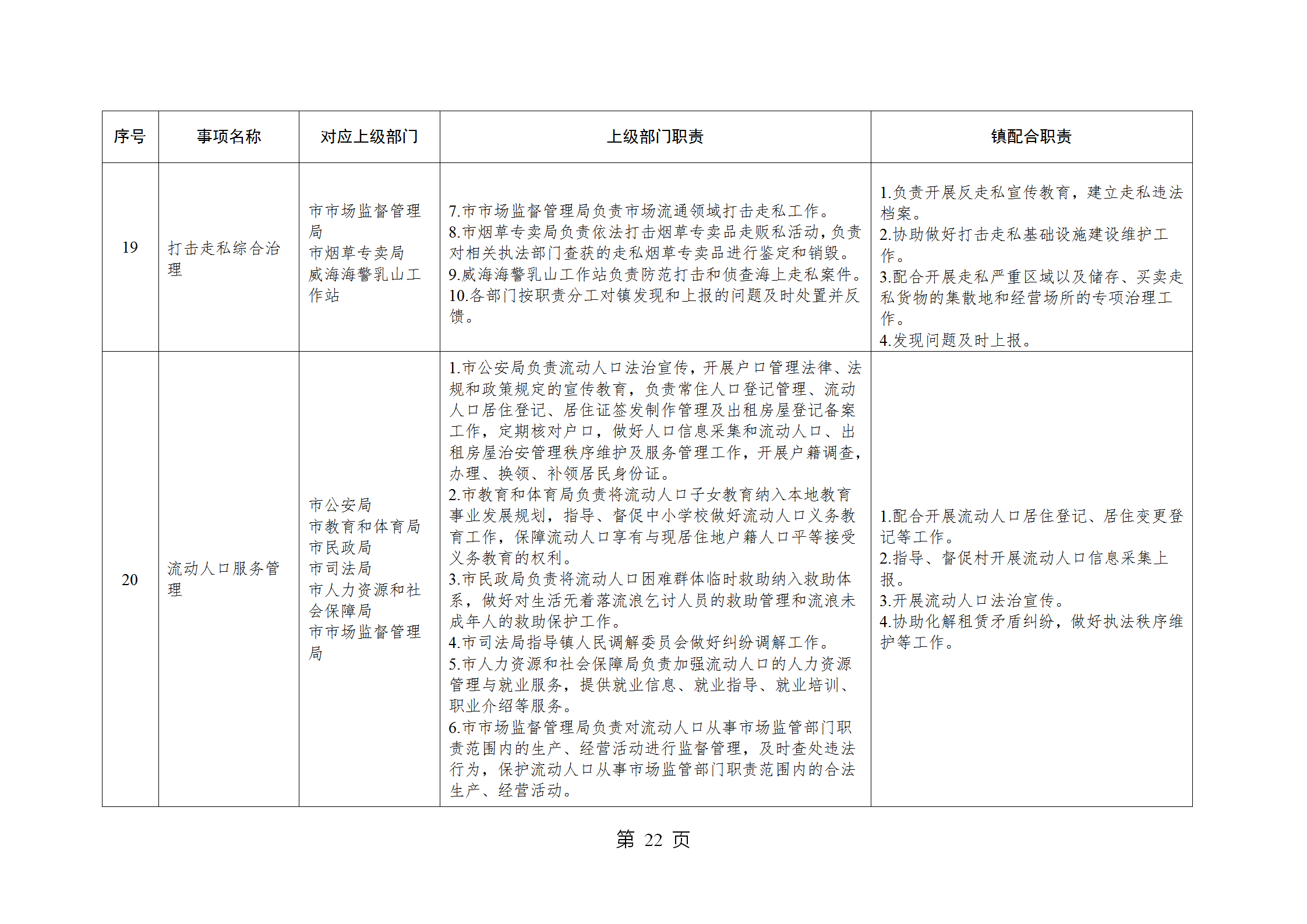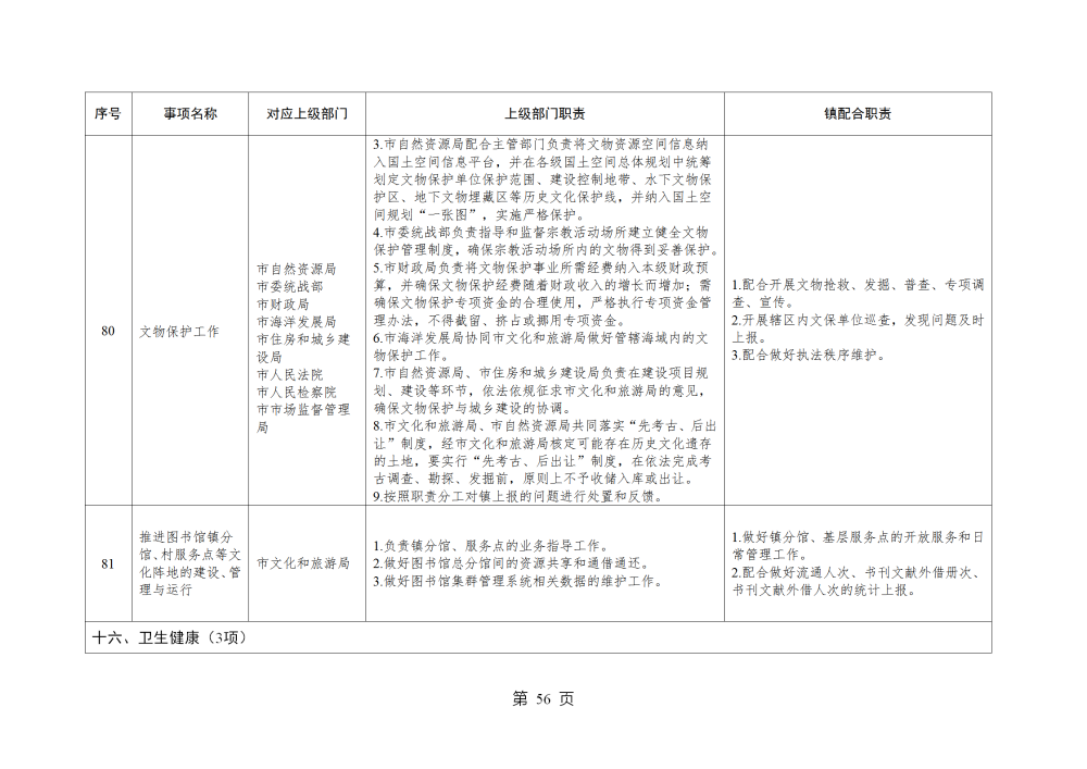 山东省威海市乳山市南黄镇履行职责事项清单