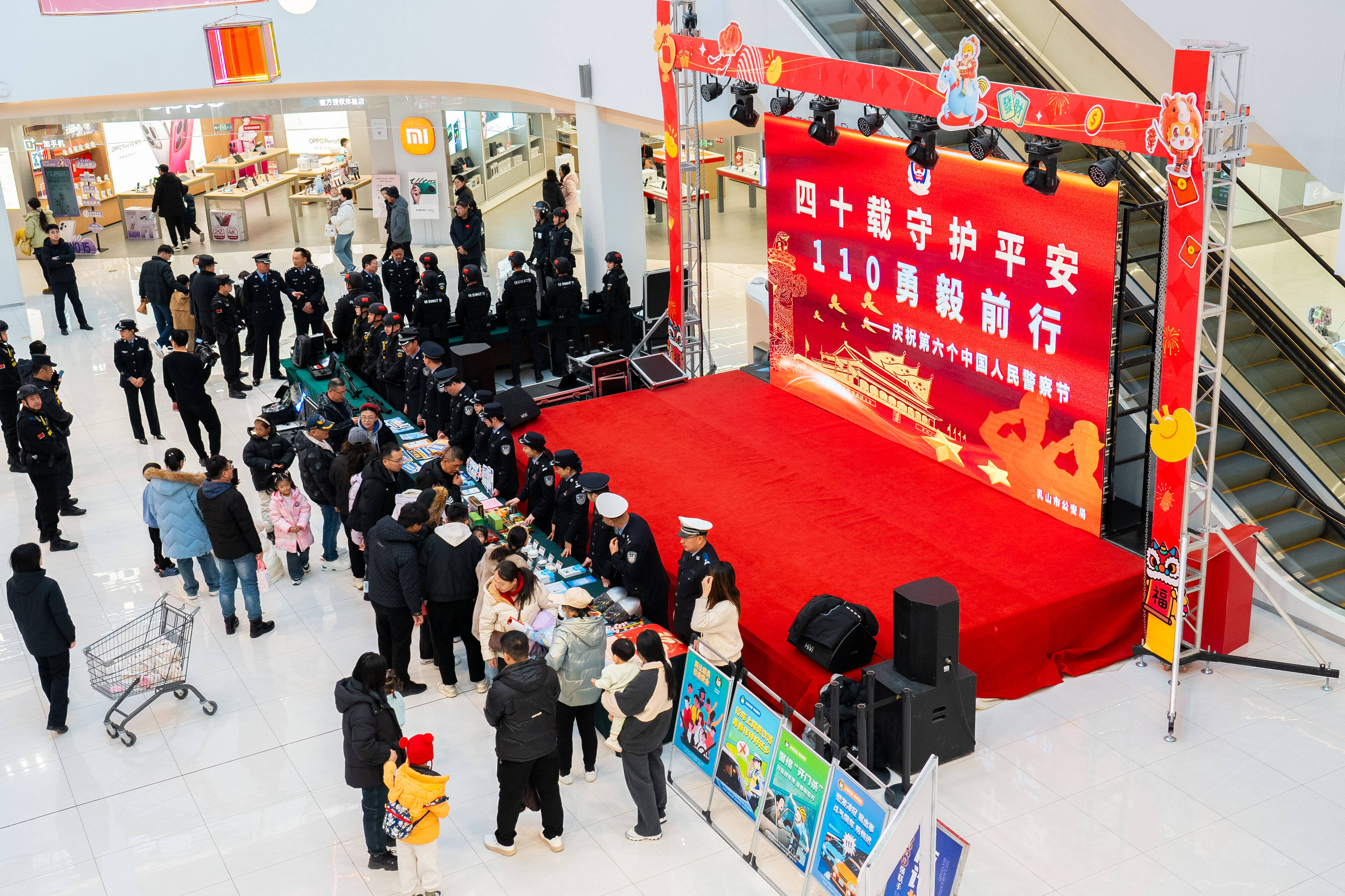 当天,市公安局还在九龙汇开展了以“四十载守护平安 110勇毅前行”为主题的宣传活动。活动中,民警向市民发放各类安全宣传材料,现场讲解如何正确拨打使用110报警电话,并就防盗、防火、防诈骗、交通出行安全、抵制毒品等方面知识进行了广泛宣传。此外,市公安局还设置特警装备展台,让市民能够零距离了解、体验警用装备,吸引了不少市民驻足观看。