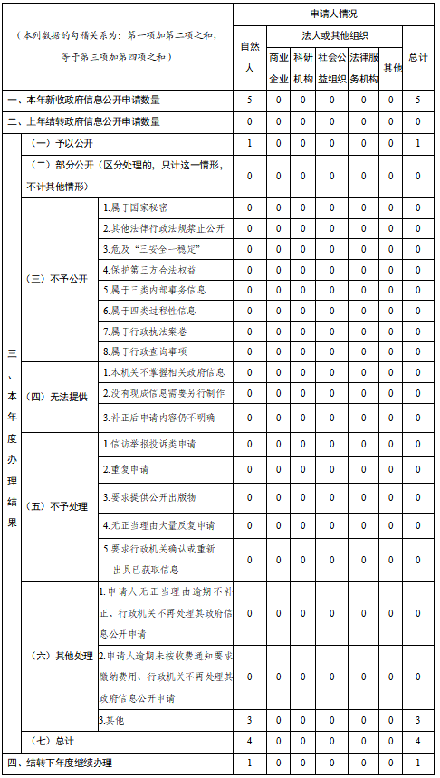 三、收到和处理政府信息公开申请情况