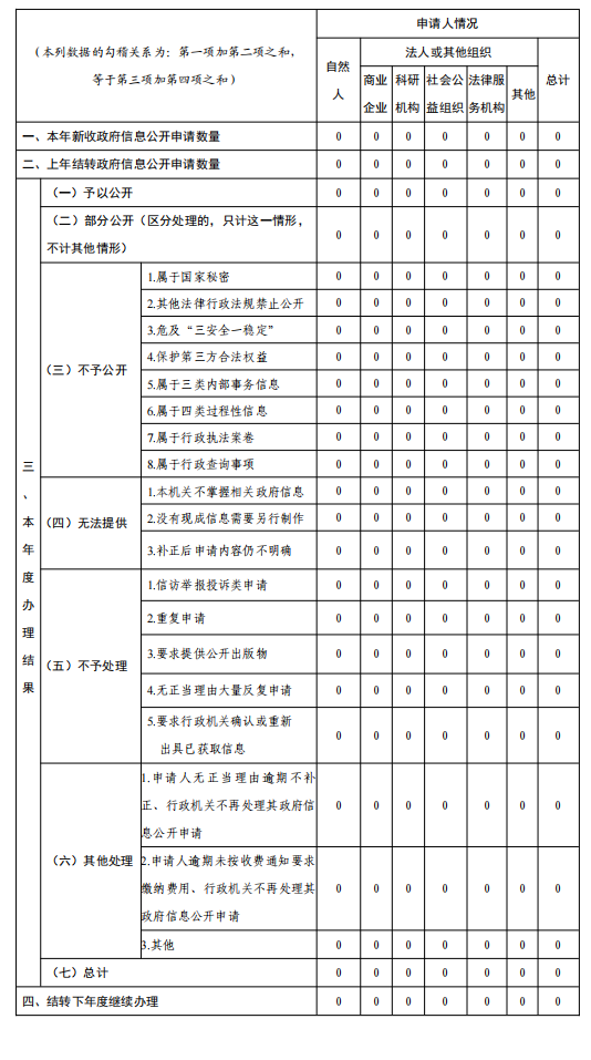 三、收到和处理政府信息公开申请情况