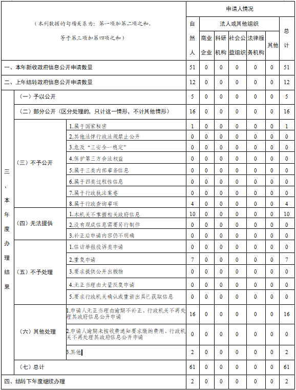 2025年新收到依申请公开政府信息申请51件,结转至2026年2件,2024年结转12件,2025年共办结61件,与去年相比减少49件。因政府信息申请引发行政复议3件,比2024年减少了8件,行政诉讼3件,比2024年增加2件。