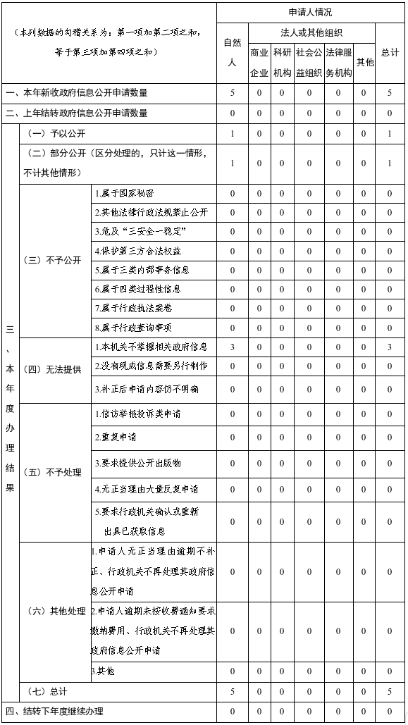 三、收到和处理政府信息公开申请情况