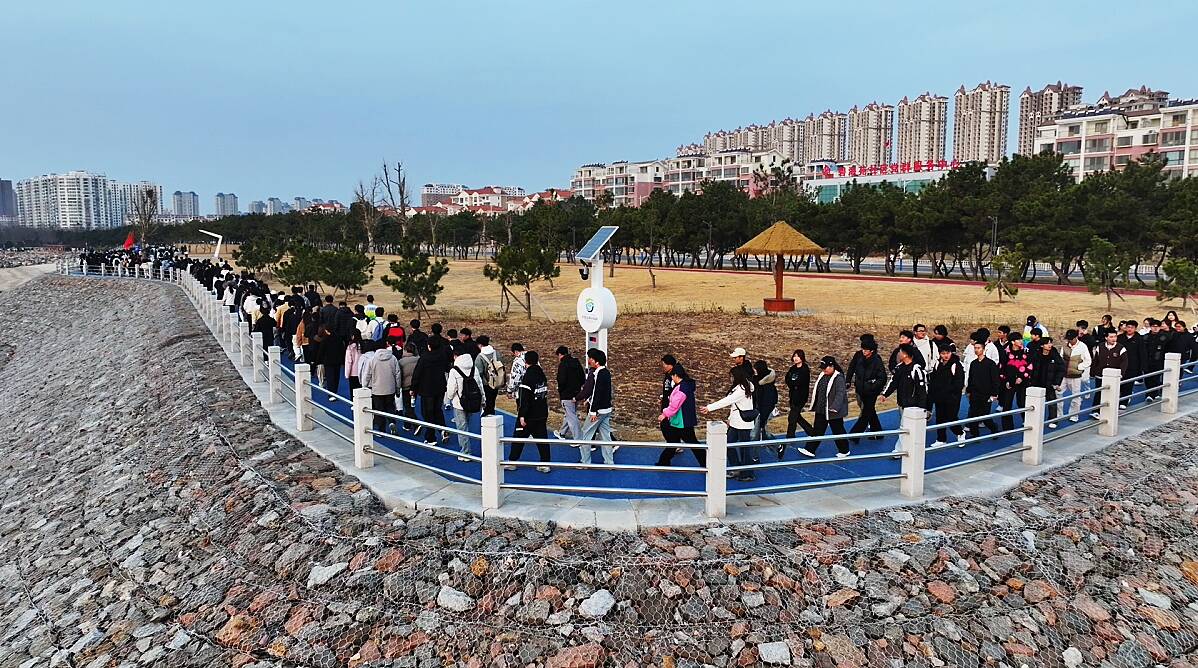 伴随着嘹亮的口号,学校的4000余名青年师生迎着晨光开启了徒步之旅。大家从学校南大门的学府广场出发,沿着海边步道,经长江路一直徒步到大拇指广场,而后折返,全程15公里左右。一路上,学生们并肩而行、欣赏风景、相互鼓励,在增进团结的同时,磨砺了意志品质。